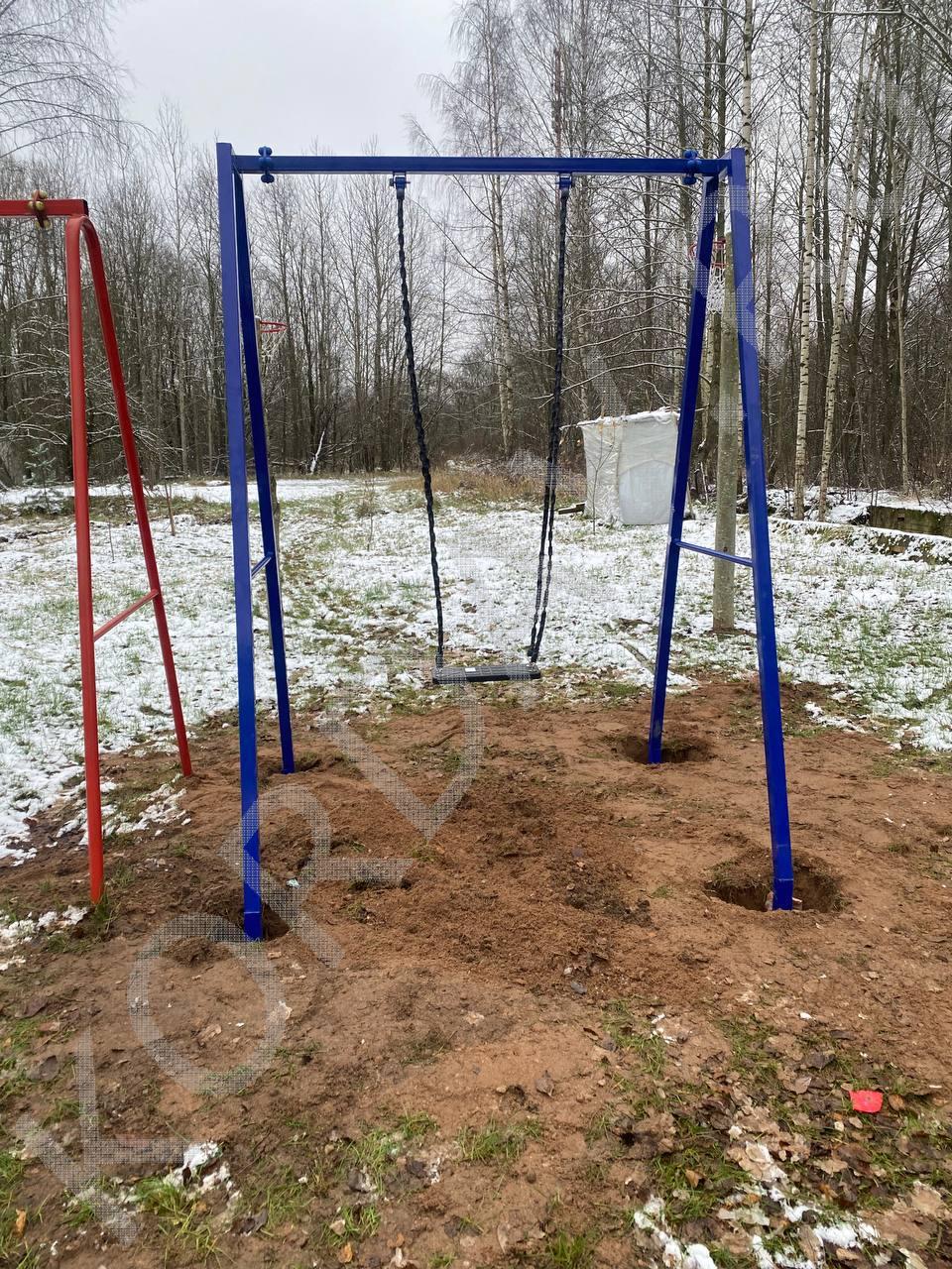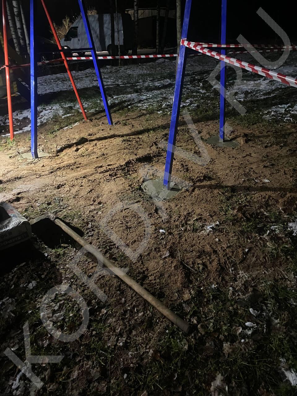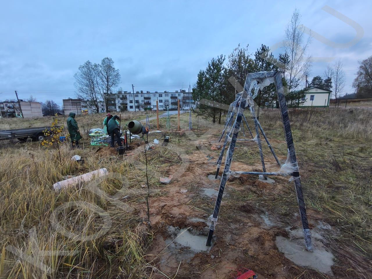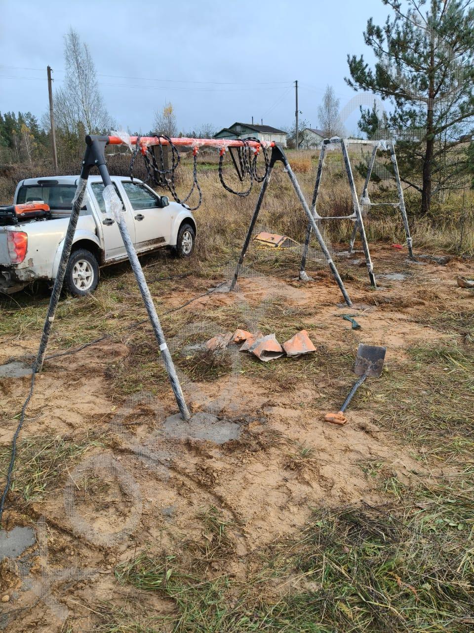 Процесс установки оборудования для детской площадки.