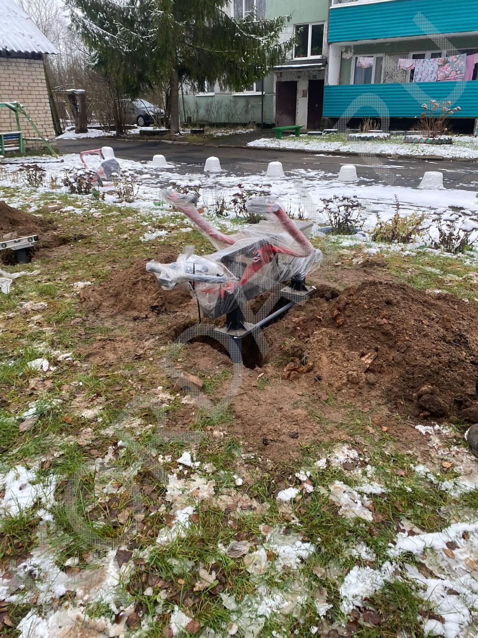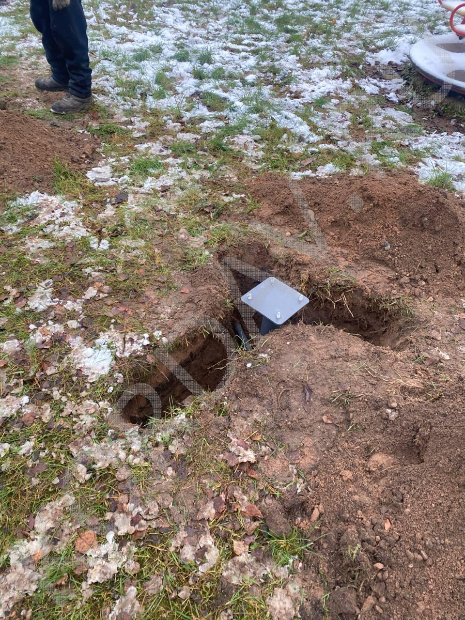 Процесс установки детской площадки. Установка следующего оборудования: ИО 7.021 Карусель